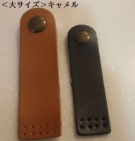 手帳やカードケースなどの留め具としてご利用ください。 幅 2cm 全長7.6cm 革の厚み 約2ミリ <大サイズ>キャメルのみ 幅2.5cm 全長 9.1cm 革の厚み 約2ミリ 本革製